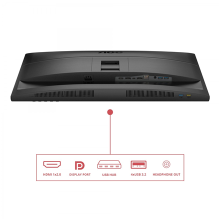 Monitorius turi 1 HDMI jungtį, leidžiančią patogiai prijungti kompiuterį ar kitą HDMI suderinamą įrenginį. Juodos spalvos, minimalistinis dizainas dera prie įvairių darbo ar žaidimų aplinkų.