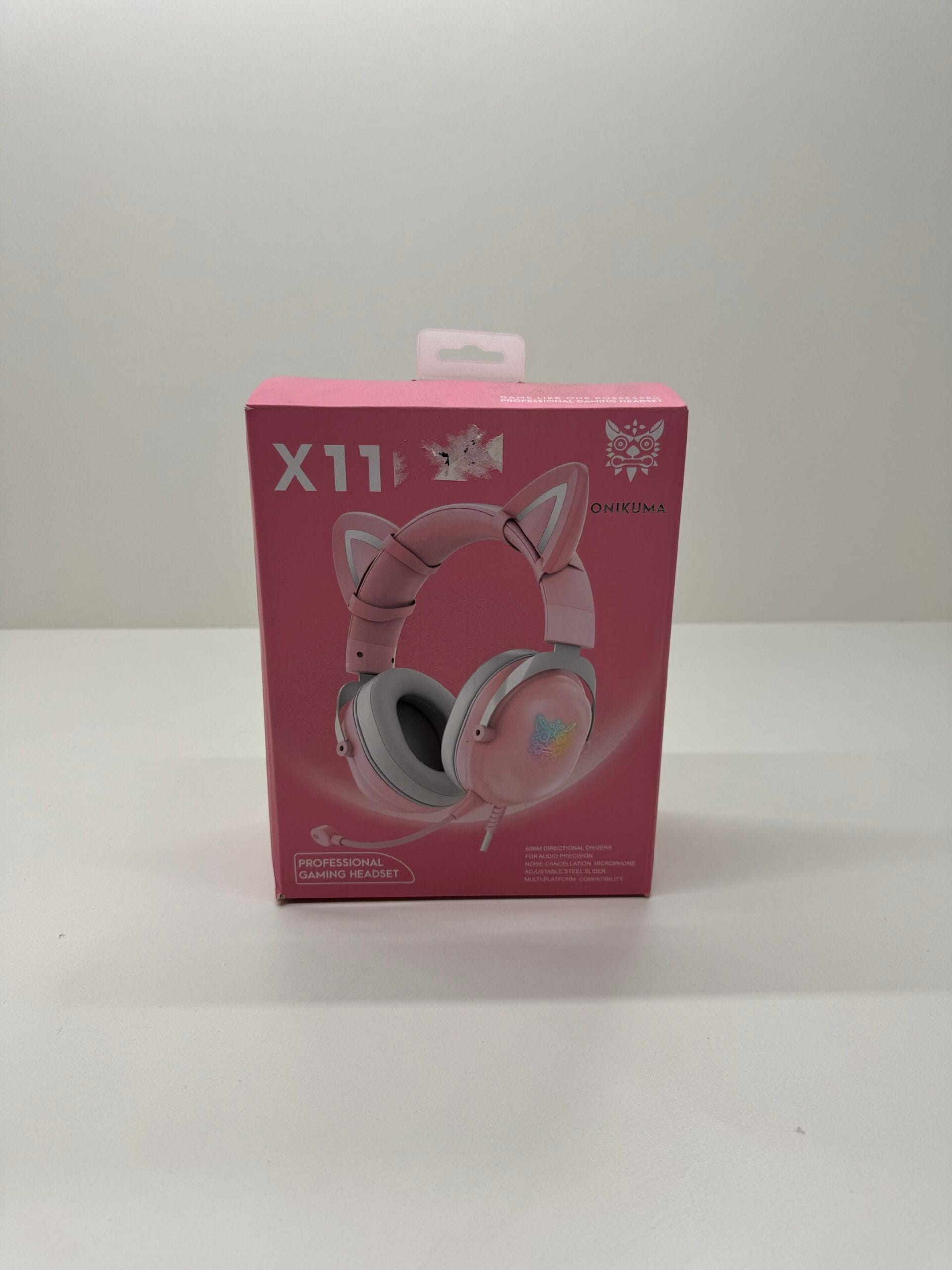 ONIKUMA X11 – tai laidinės žaidimų ausinės su nuimamomis kačių ausytėmis, sukurtos siekiant suteikti žaidėjams patogumą ir stilingą išvaizdą.