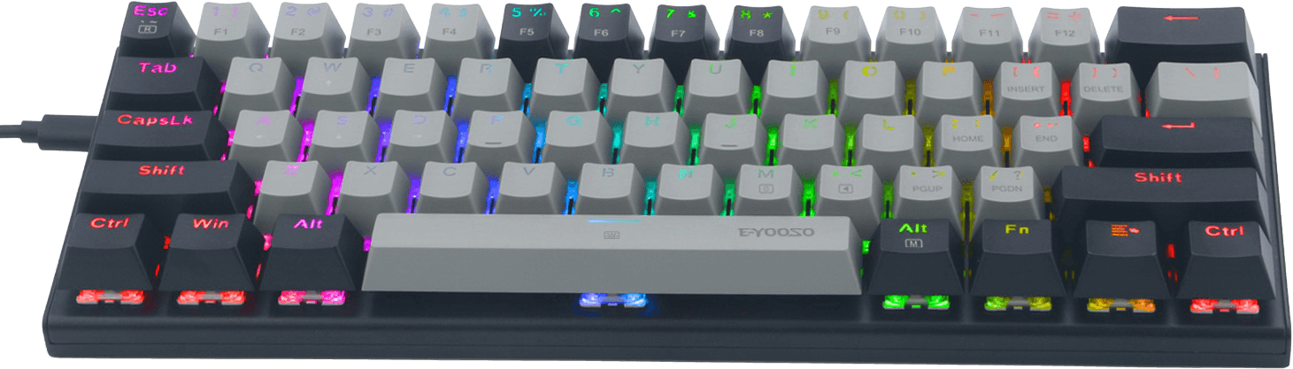 E‑Yooso Z‑11 – tai tvirta, patikima ir kompaktiška klaviatūra, puikiai tinkanti tiek produktyviam darbui, tiek intensyviam žaidimui, kai norisi tylos, greičio ir stiliaus viename įrenginyje.