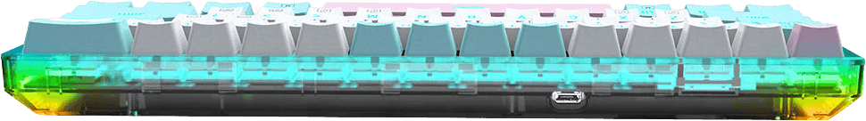Permatomas korpusas suteikia modernų, žaismingą vaizdą, o vidinė RGB apšvietimo sistema leidžia rinktis iš daugybės efektų, kurie šviečia ne tik pro klavišus, bet ir nušviečia visą korpusą iš vidaus. Tai tikra stalo puošmena, ypač vakarais ar žaidimų sesijų metu.